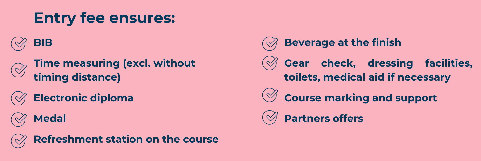 | 7 km without timing run/walk | 20 € | 25 € | 30 € |