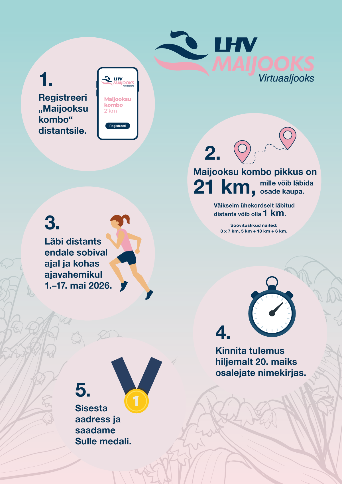 Kõik virtuaaljooksust osavõtjad peavad distantsi läbimise kinnituse lisama osalejate nimekirja ajavahemikus 1. mai – 20. mai, 2026 .
