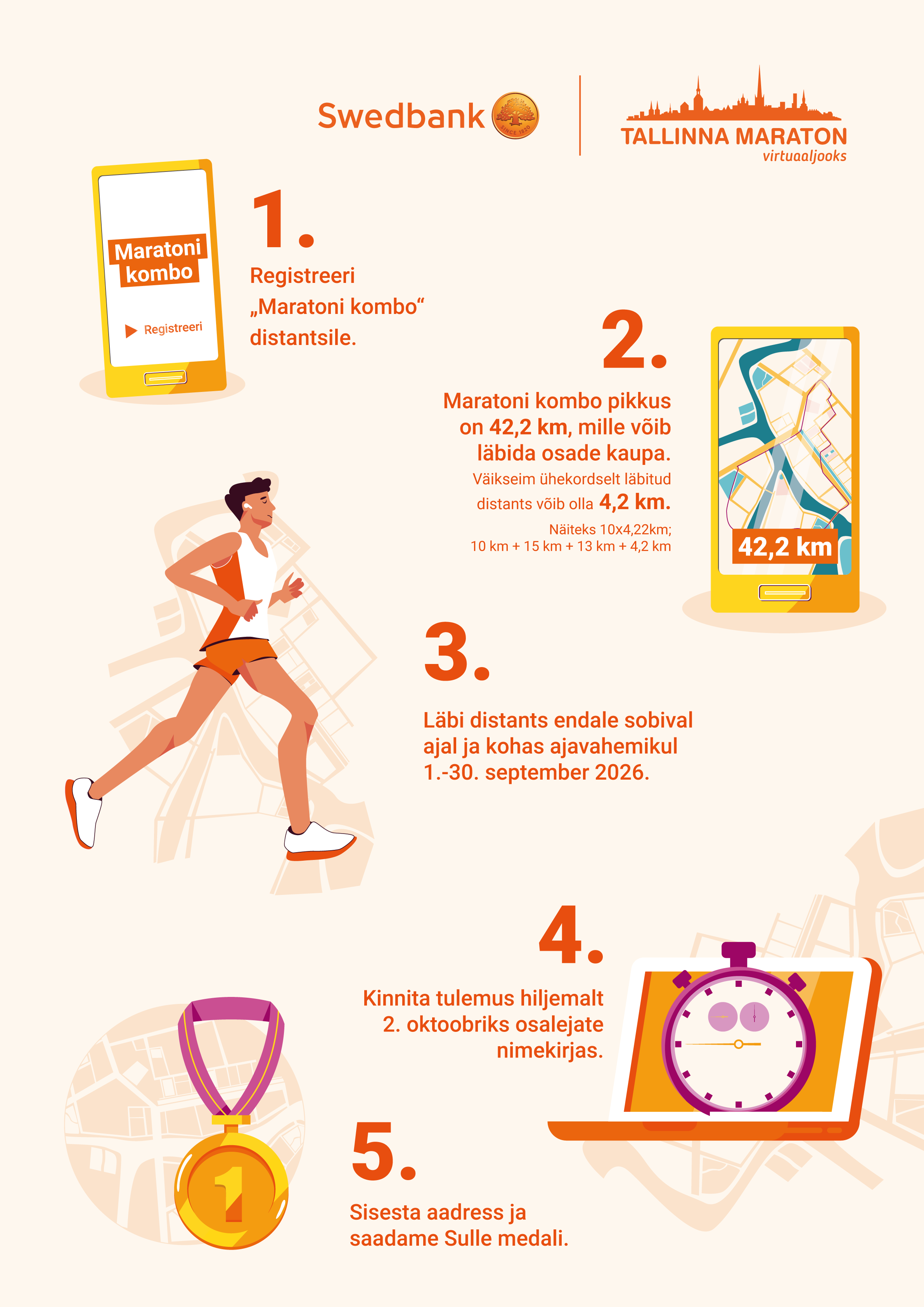 - Kõik virtuaaljooksust osavõtjad peavad distantsi läbimise kinnituse lisama osalejate nimekirja ajavahemikus 1. september – 2. oktoober, 2026.