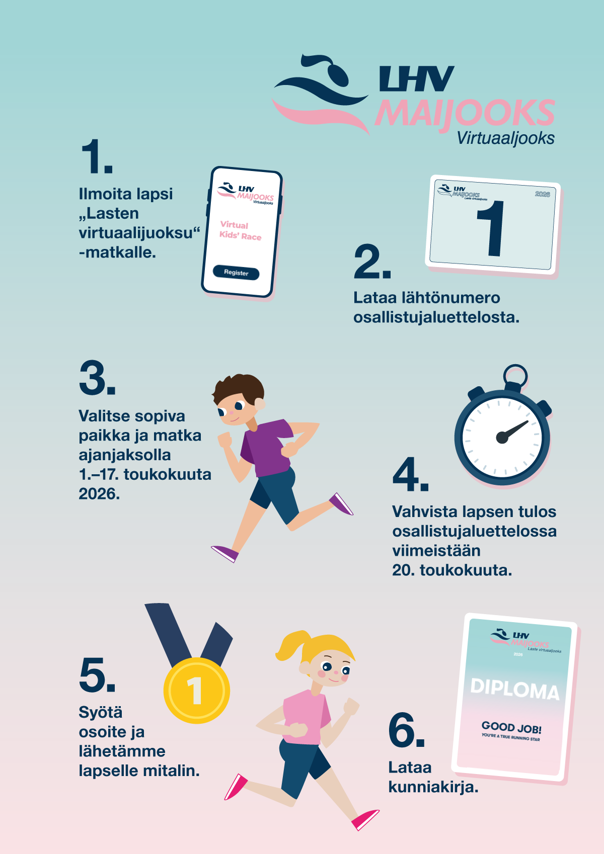 - Kaikille, jotka vahvistavat osallistumisensa osallistujaluettelossa, mitali postitetaan viimeistään 31.5.2026.